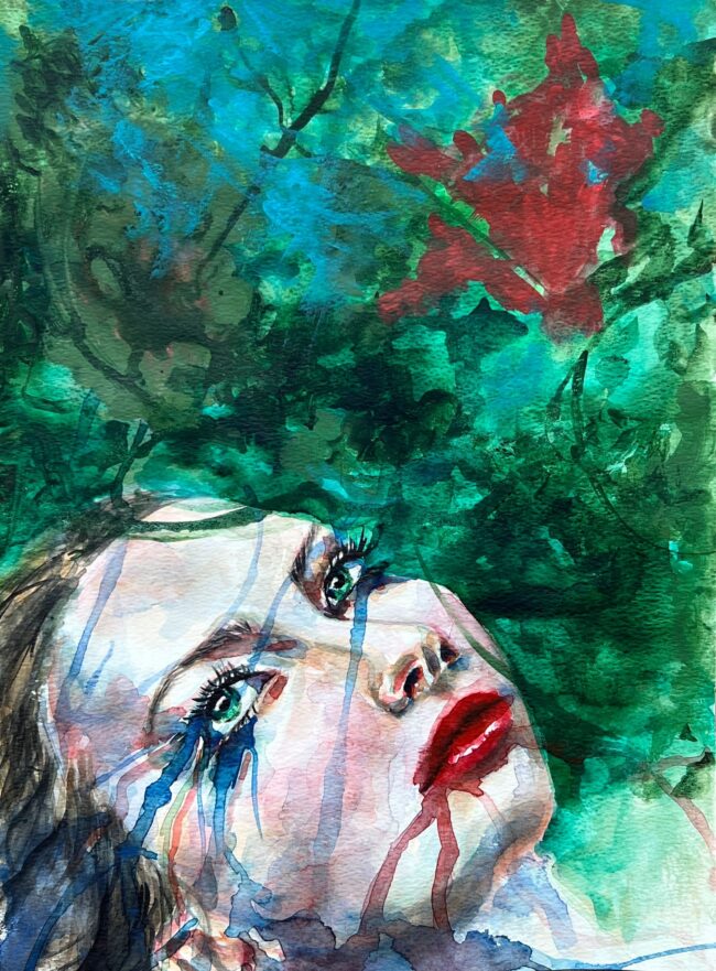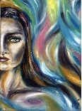 I find joy in watching colours dissolve, flow, and transform into new shades and dimensions. They seem to come alive, breathing energy and vitality into a once-blank canvas. The painting becomes a living presence – sometimes questioning, sometimes smiling ironically, sometimes warmly, and sometimes hiding sorrow or anxiety behind its gaze.