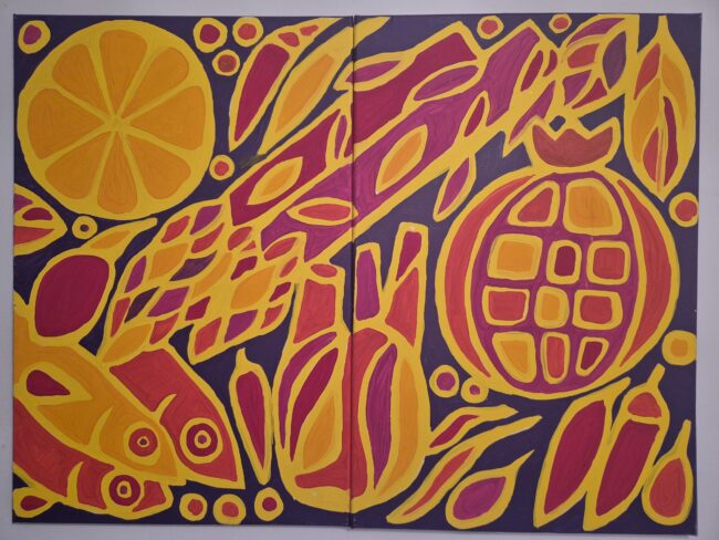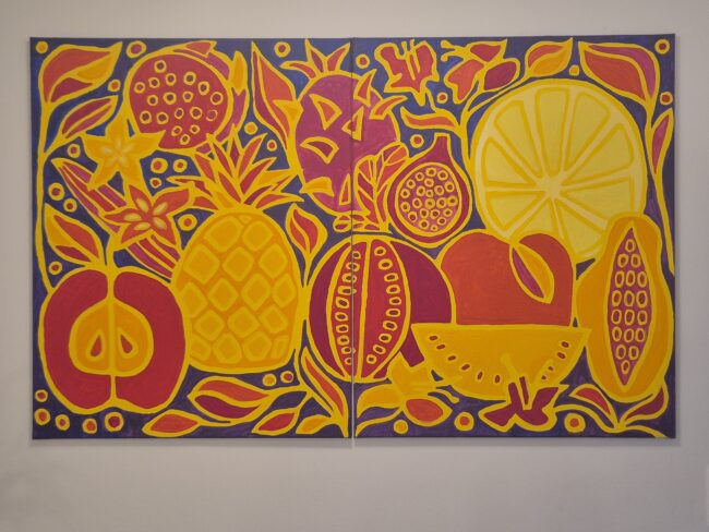 A trip to Australia in 1999 inspired him to explore Aboriginal painting, especially the Dreaming in music, lyrics and art, which led to his own large-scale colourful paintings, a practice he continues to this day. His paintings have been shown in several exhibitions in Vienna (ÖBV Atrium, Soho in Ottakring, Palais Schwarzenberg), Buchberg am Kamp (Neues Schloss), Bernstein im Burgenland (2022), in the Gallery at Martinshof, Villach (2023).
