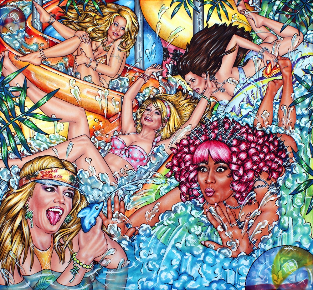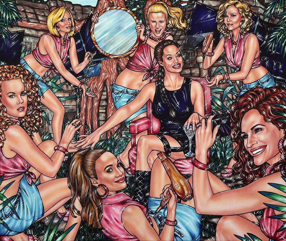 Pop icons such as Madonna or Britney Spears, self-staged art figures like Pamela Anderson, or fashion role models such as Sarah Jessica Parker and her Sex and the City colleagues appear as protagonists of his imagination, moving in a naively perfect world as the ideal figures of our time. The striking perfection of this stage-like world, in which everything seems to be made of plastic, and the artificial self-staging of its figures create a parallel universe with an unreal, comic-like atmosphere.