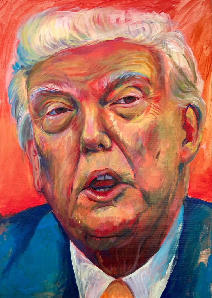 The works are meant to critique and provoke, while at the same time existing in harmony with one another. Colors and contrasts act as messengers of a larger statement. They invite viewers to think, to question, and perhaps even to challenge their own perspectives—while still clearly expressing the artist’s standpoint.